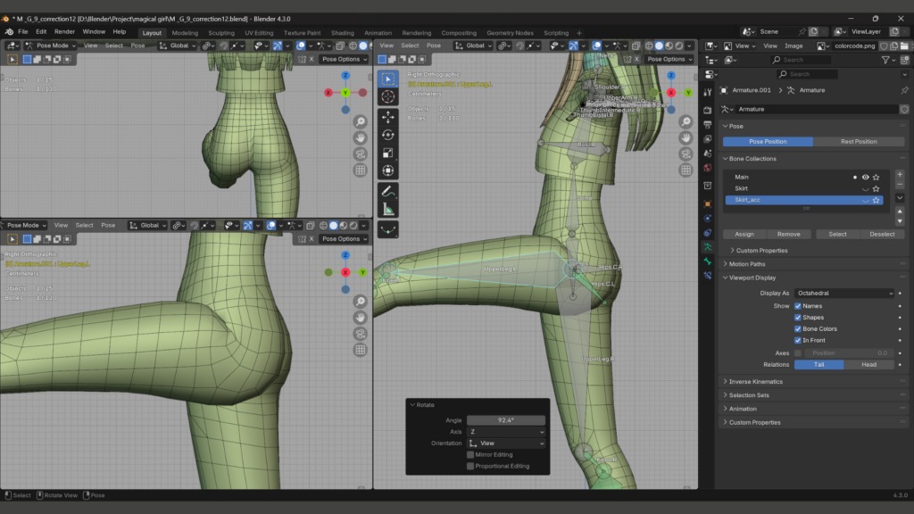 ふさこさんの雑談作業配信でボーンの構造やコピーローテーションの設定とか、やってる