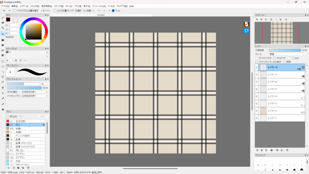 線の幅や位置、色を変えて色々なチェック柄を作ってみてください。
