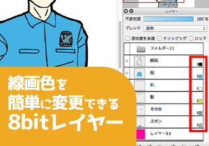 これから行う作業は単色ばかりなので、後から色を簡単に変更できるように8bitレイヤーを使います。