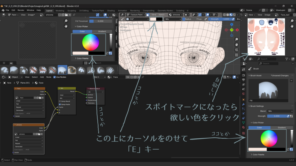 そんな時は「色を選択する所」にカーソルをのせて「E」キーをクリックする。